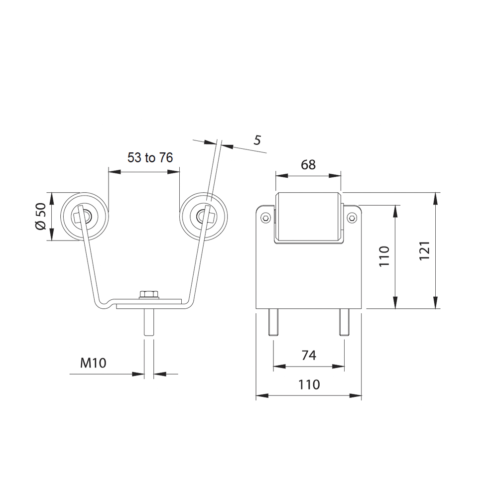 Adjustable end cup with nylon rollers, Mini (small)